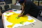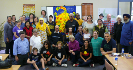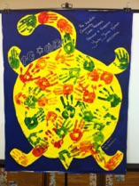 There was one more trip to the Community Centre where we ate another wonderful lunch cooked up by Jamel and Andrew. Jamel had also painted an image or a turtle on a canvas, and each participant put read or green paint on their hands, and placed a handprint on the picture. This became a gift from the participants on the retreat to the Yorta Yorta Elders. Thank you speeches were made, gifts exchanged, cleaning up and dishes done, before the long trek back to Melbourne.