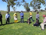 Next we traveled to our beautiful cabins, right on the Murray River bank in Moama, where we spent some time settling in and meeting the folk we had not met on our busses. Some sensible people had brought bathers and advantage of the heat, by taking a swim in the pool. I looked at the winter coat in my bag and realized that I had not done my homework on the weather!