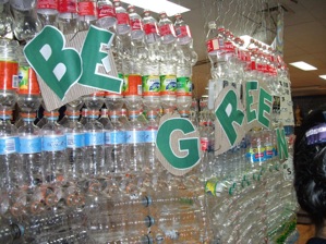 We also had a tour of a display at the centre. We could see the bottles in their various stages of change, and see finished products made from the synthetic fibre. There was also a display prepared by the young people of the centre, about the huge environmental advantages of Vegetarianism.